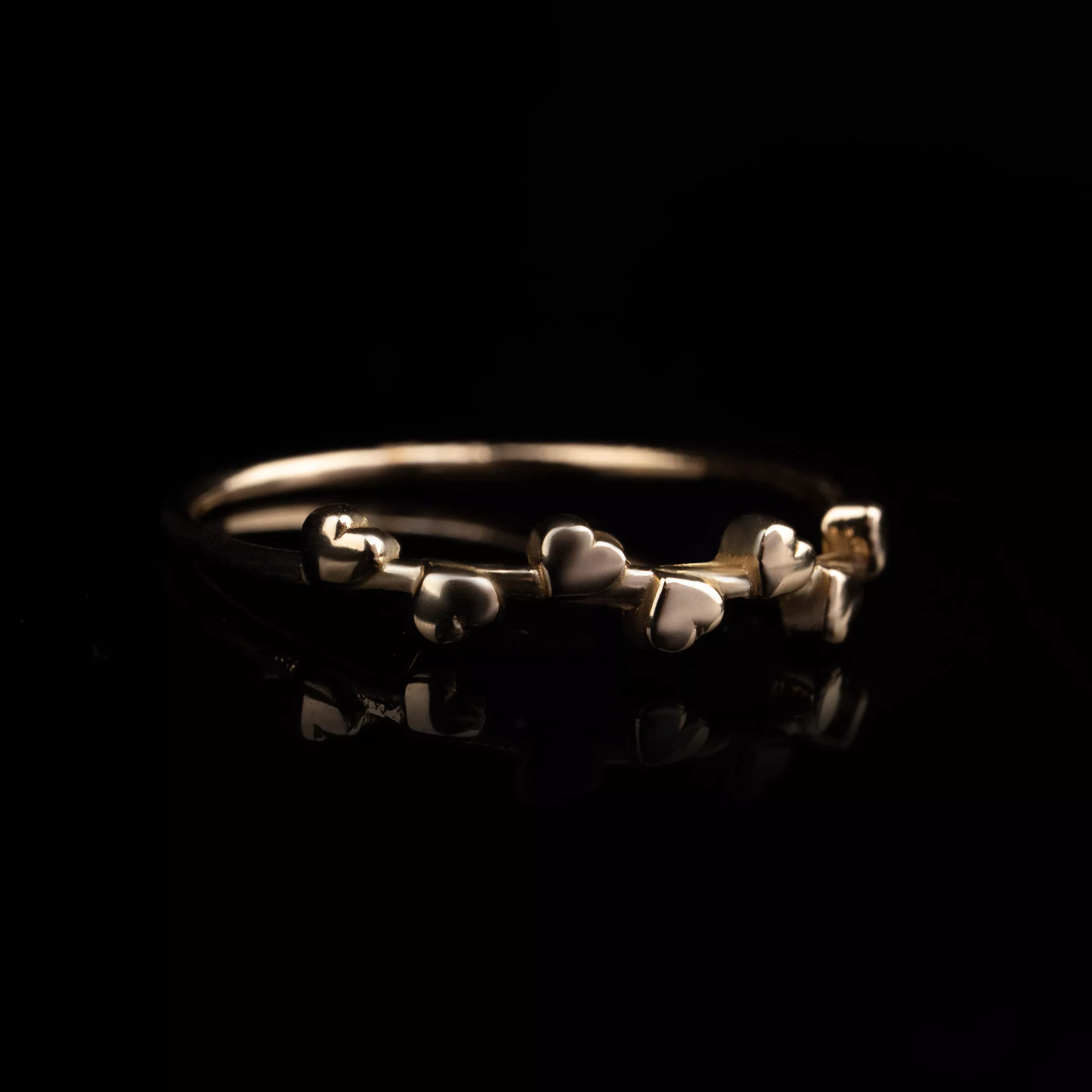 در این انگشتر، قلب کوچک بهصورت برجسته یا توخالی طراحی شده و بدون جزئیات اضافی، بر زیبایی طبیعی طلا تکیه دارد. طراحیاش بهقدری ساده و سبک است که برای استفاده روزمره یا ترکیب با سایر حلقهها کاملاً ایدهآل خواهد بود.