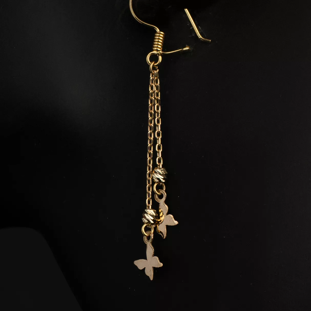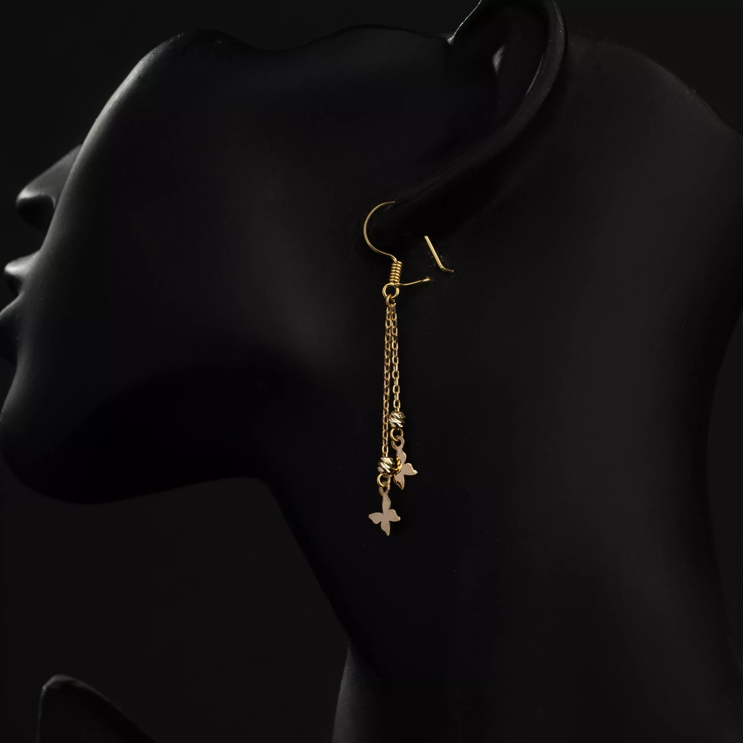 طراحی ظریف و الهامگرفته از طبیعت: پروانه نماد لطافت و شادابی است و طراحی آویز آن باعث ایجاد حرکت و درخشش بیشتر روی گوش میشود که زیبایی چهره را دوچندان میکند.